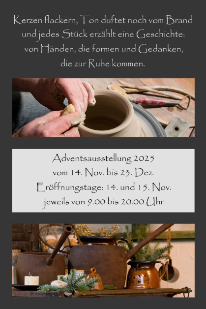 Eröffnung unserer Adventsaustellung 2025                                                                   14. und 15. November von 9.00 bis 20.00 Uhr                                                             und bis zum 23. Dezember zu unseren Öffnungszeiten